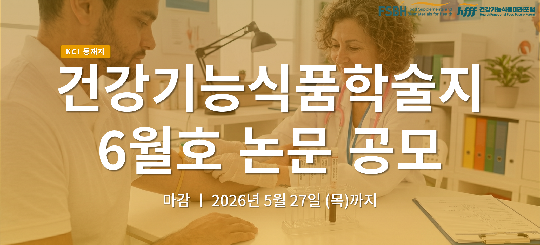 건강기능식품학술지 FSBH는 KCI 등재지로 건강기능식품 및 생물학적 기능성 소재에 대한 새롭고 혁신적인 연구결과를 발간하고 있습니다. Vol.6 No.2 (6월호) 논문 제출 마감일은 5월 27일 (수)까지이며, 투고 관련 자세한 사항은 FSBH 홈페이지에서 확인 가능합니다. (홈페이지 바로가기)