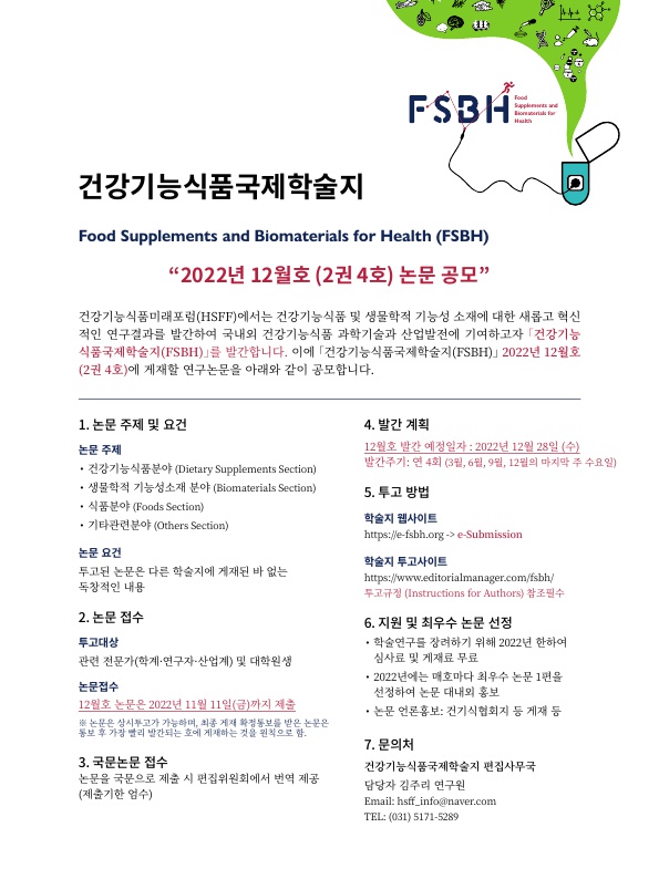 건강기능식품국제학술지(FSBH) 2022년 12월호 (제 2권 4호) 논문공모